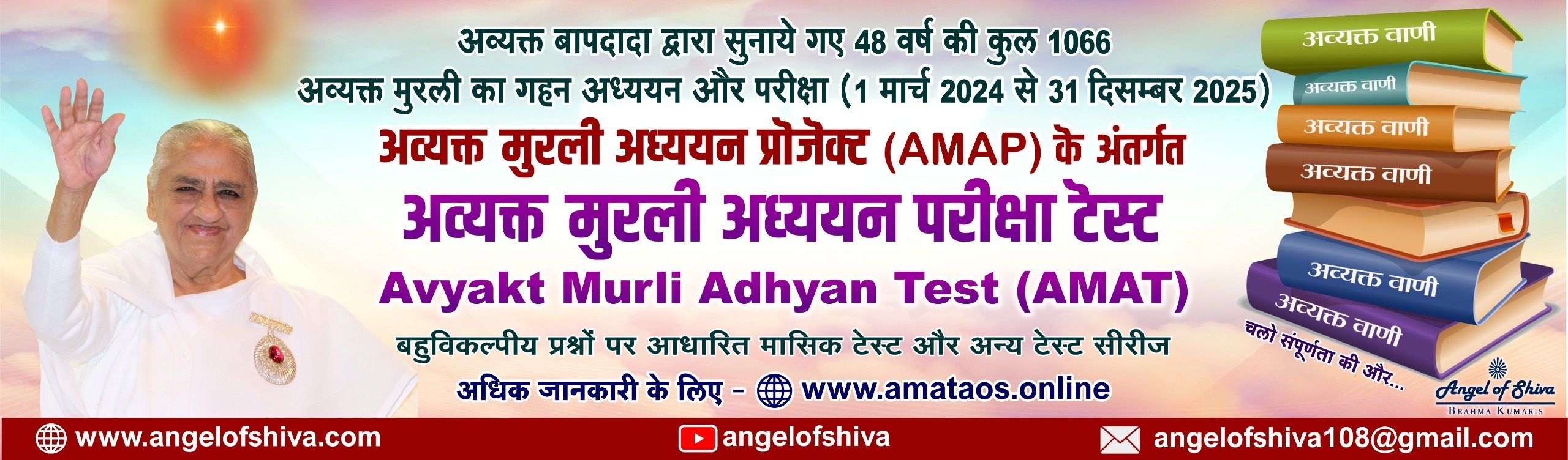 This project is related to the study of a total of 1066 Avyakt Murlis of 48 years, the aim of which is to study all the Avyakt Murlis in depth from 1st March 2024 to 31st December 2025, make notes of them and read each Murli with interest and dedication to reach their depths and give a test on it. So that such high Mahavakyas can be imbibed in a playful way.